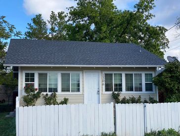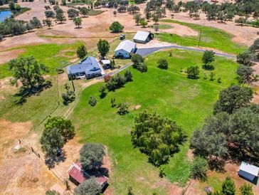 This charming two bedroom, one bathroom farmhouse sits on an acre with a seasonal creek in the backyard. Step inside and you'll find the adorable remodeled kitchen with stainless steel appliances, a remodeled bathroom with a custom barn door and a large laundry room. Outside you'll find a detached one-car garage, carport, workshop shed, and storage sheds. In the backyard the sellers built a shaded lounge seating with plenty of room for a fire pit, BBQ or pool. There's a chicken coop, raised garden beds, pecan trees and grape vines with plenty more room to expand!